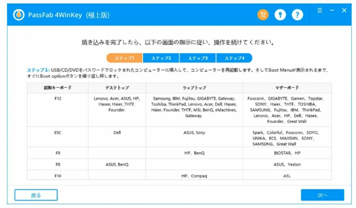 Step5:画面のガイドに沿って、パスワードが不明なパソコンのロックを解除するための起動ディスクの作成を完了させます。