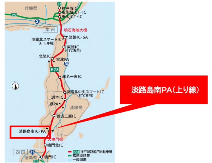 ※淡路島南IC入口からは、淡路島南PAには立寄れませんのでご注意ください。