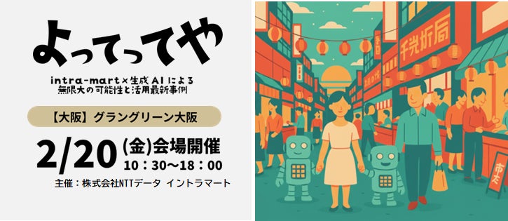 NECネクサソリューションズは、2月20日(金)コングレスクエア グラングリーン大阪にて開催されます「よってってや!~intra-mart×生成AIによる 無限大の可能性と活用最新事例~」に出展します。