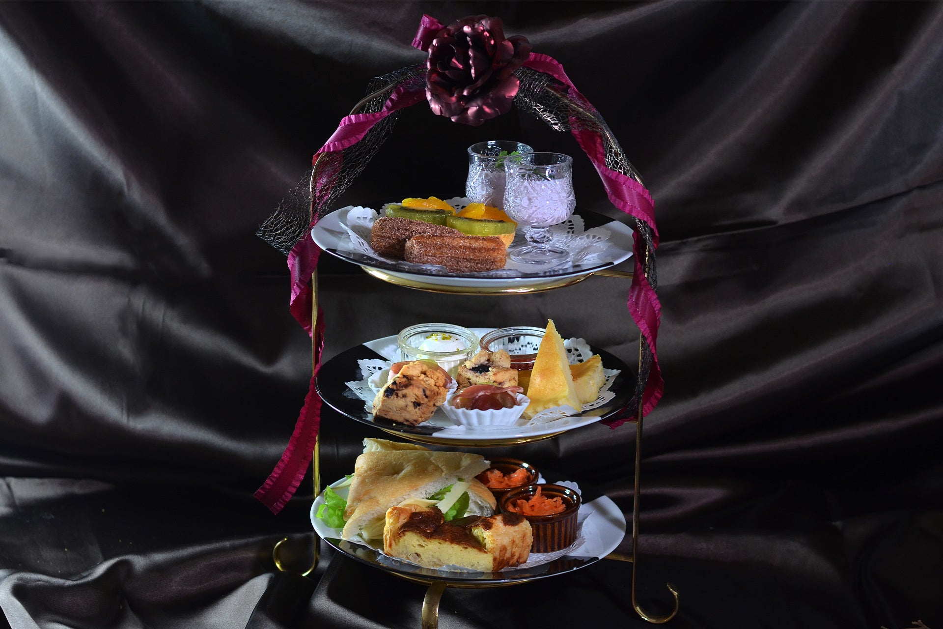 不思議の国のアリスをイメージしたちょっぴりダークな世界観のアフタヌーンティー。