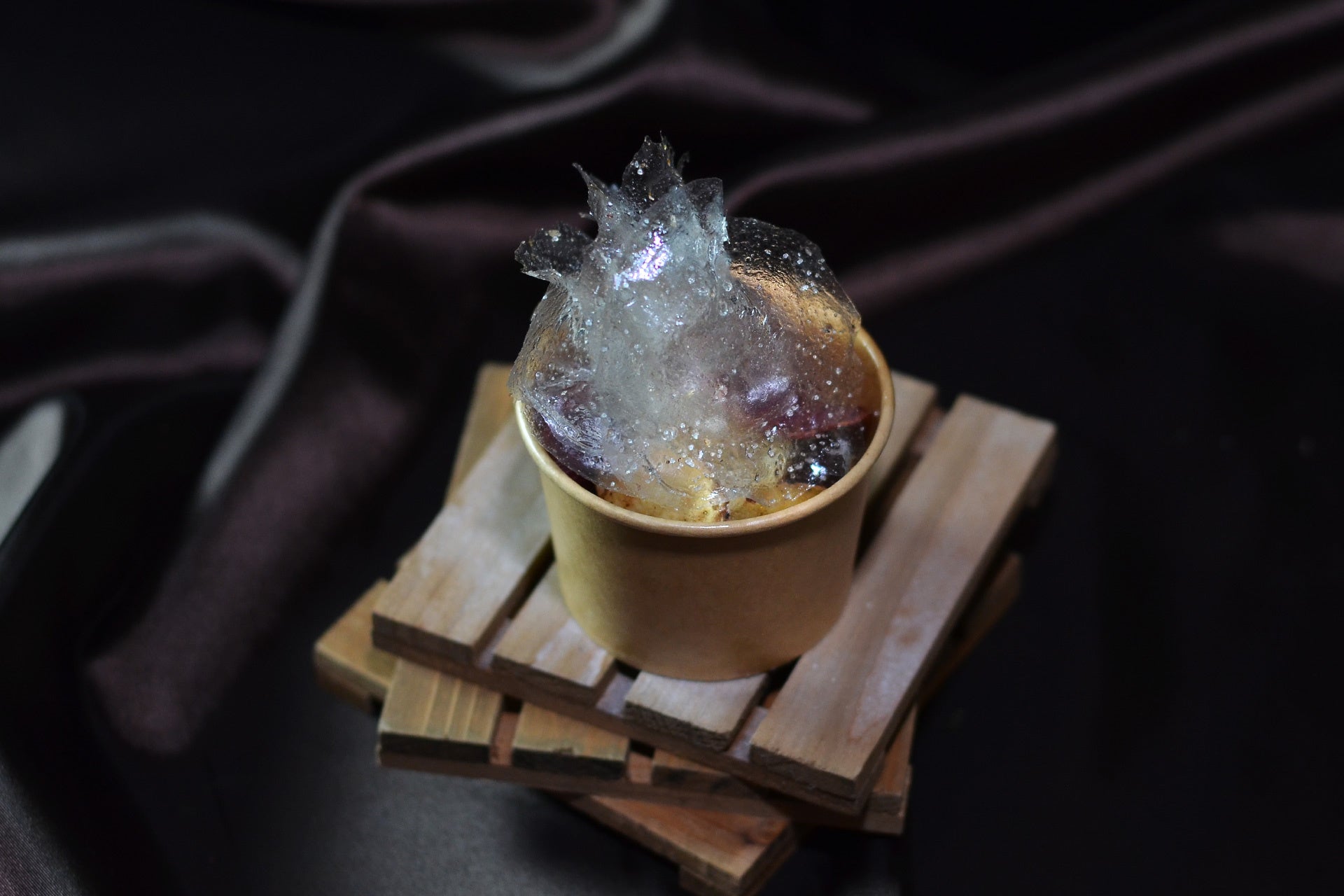 思わず二度見してしまう、不思議な「透明ポテトチップス」が主役のワンハンドグルメが登場します。紫芋とさつまいものチップスもセットになっており、見た目のインパクトとともに、味わいの違いもお楽しみいただけます。味付けには銀の森の人気商品「竈出汁」を使用しました。