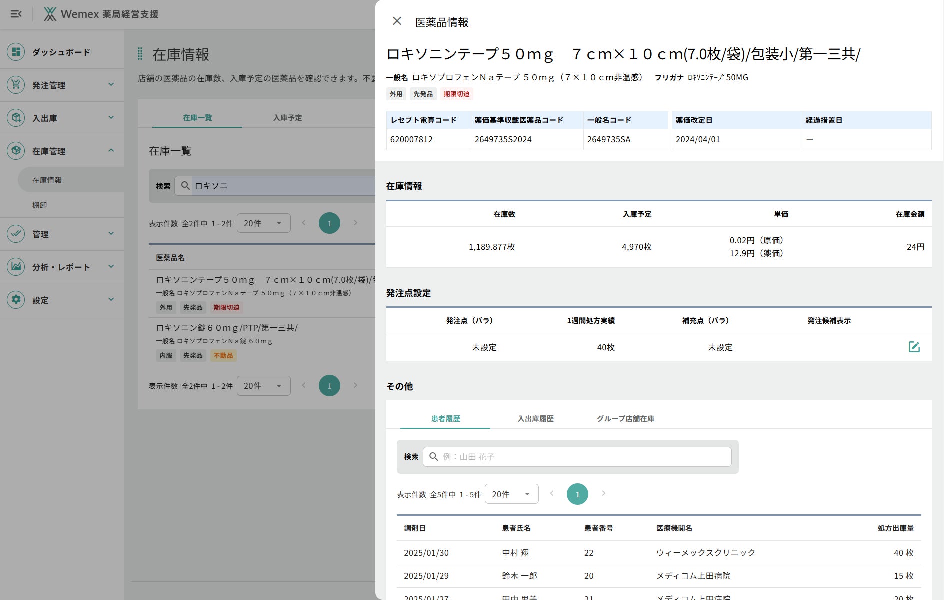 薬局向け経営管理システム「Wemex 薬局経営支援」に在庫管理機能を搭載