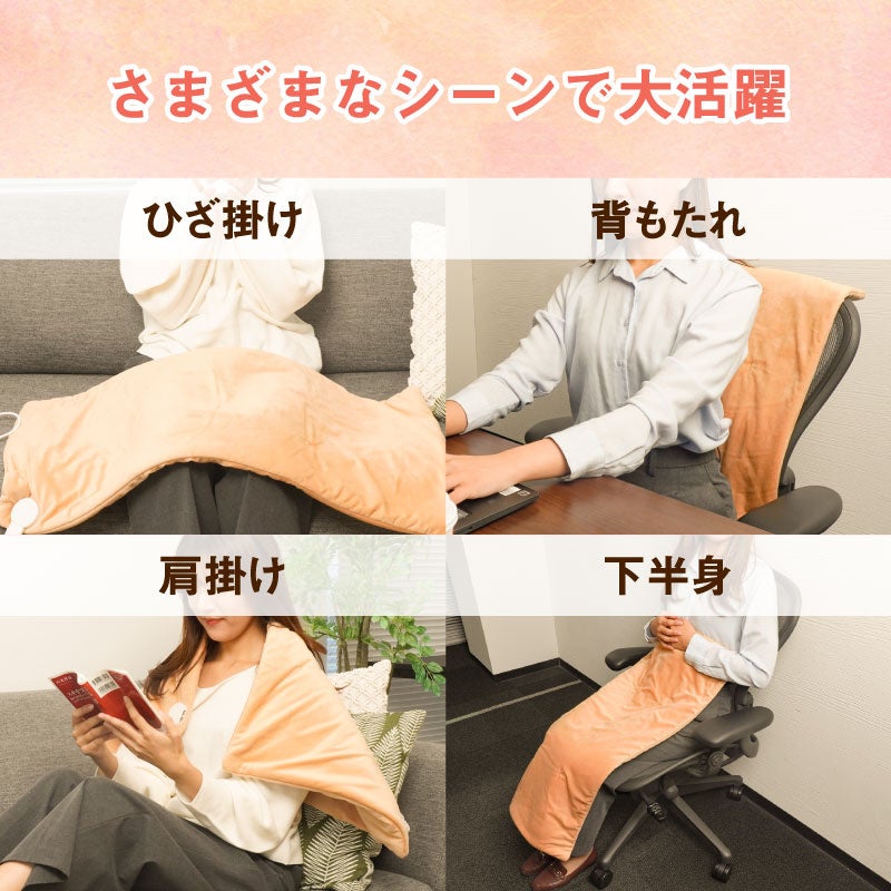 本製品はひざ掛けや肩掛けとしても使える電気ブランケットホットマットです。