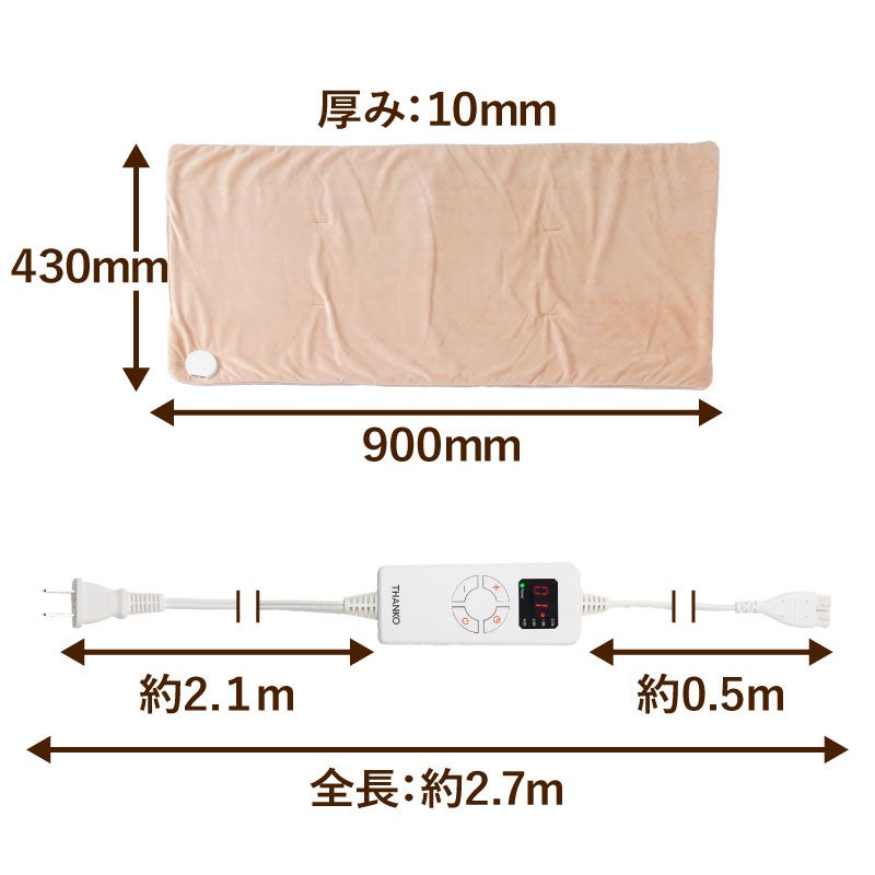 ■長さ90cm幅43cm厚さ1cmの電気ブランケットホットマット