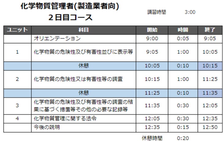 【化学物質管理者2日コース(製造業者向け/学科)】