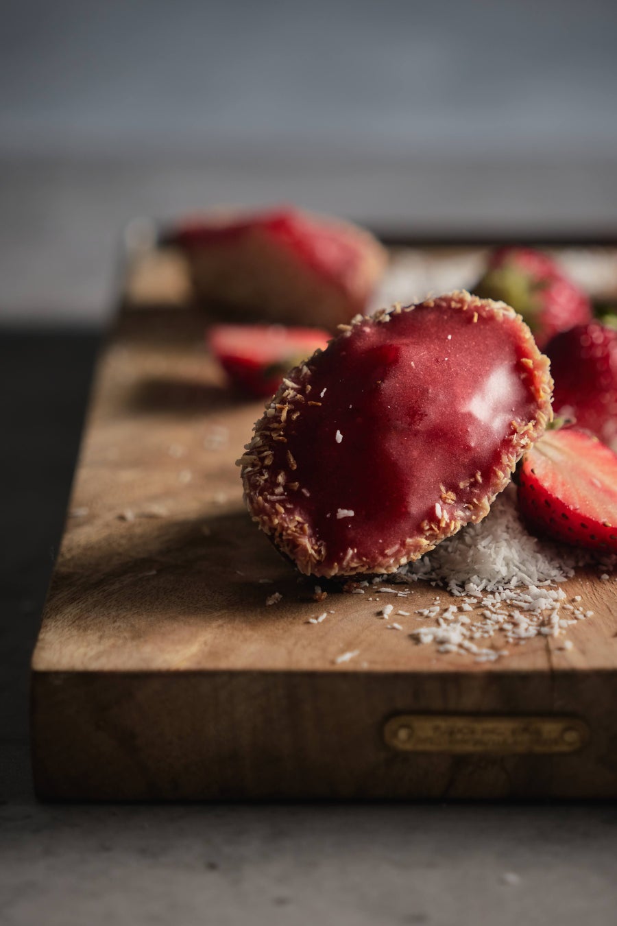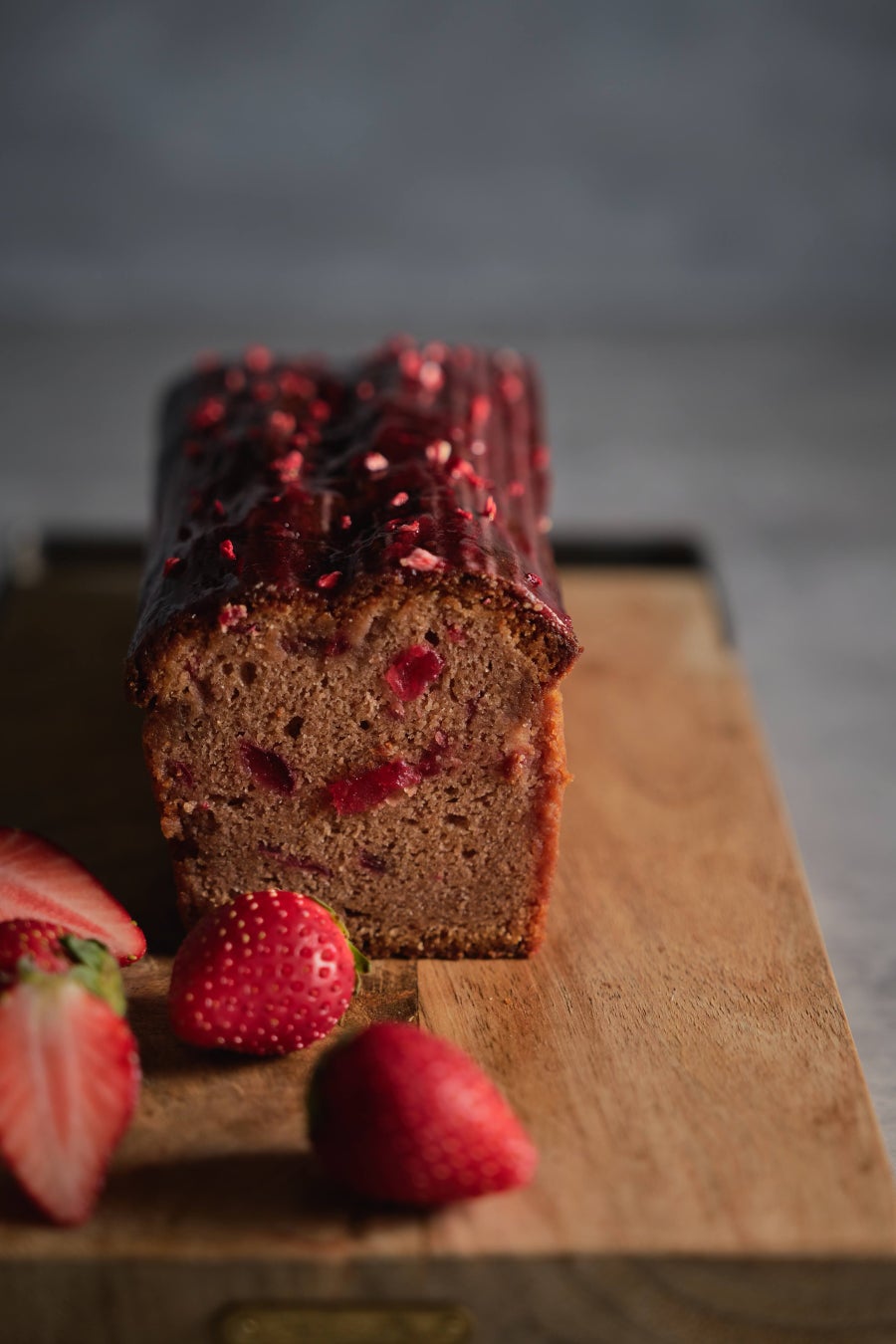 パウンドケーキのトップに塗ったいちごのコンフィチュールにはシャンパンを加え、上品でより華やかなパウンドケーキに仕上げました。