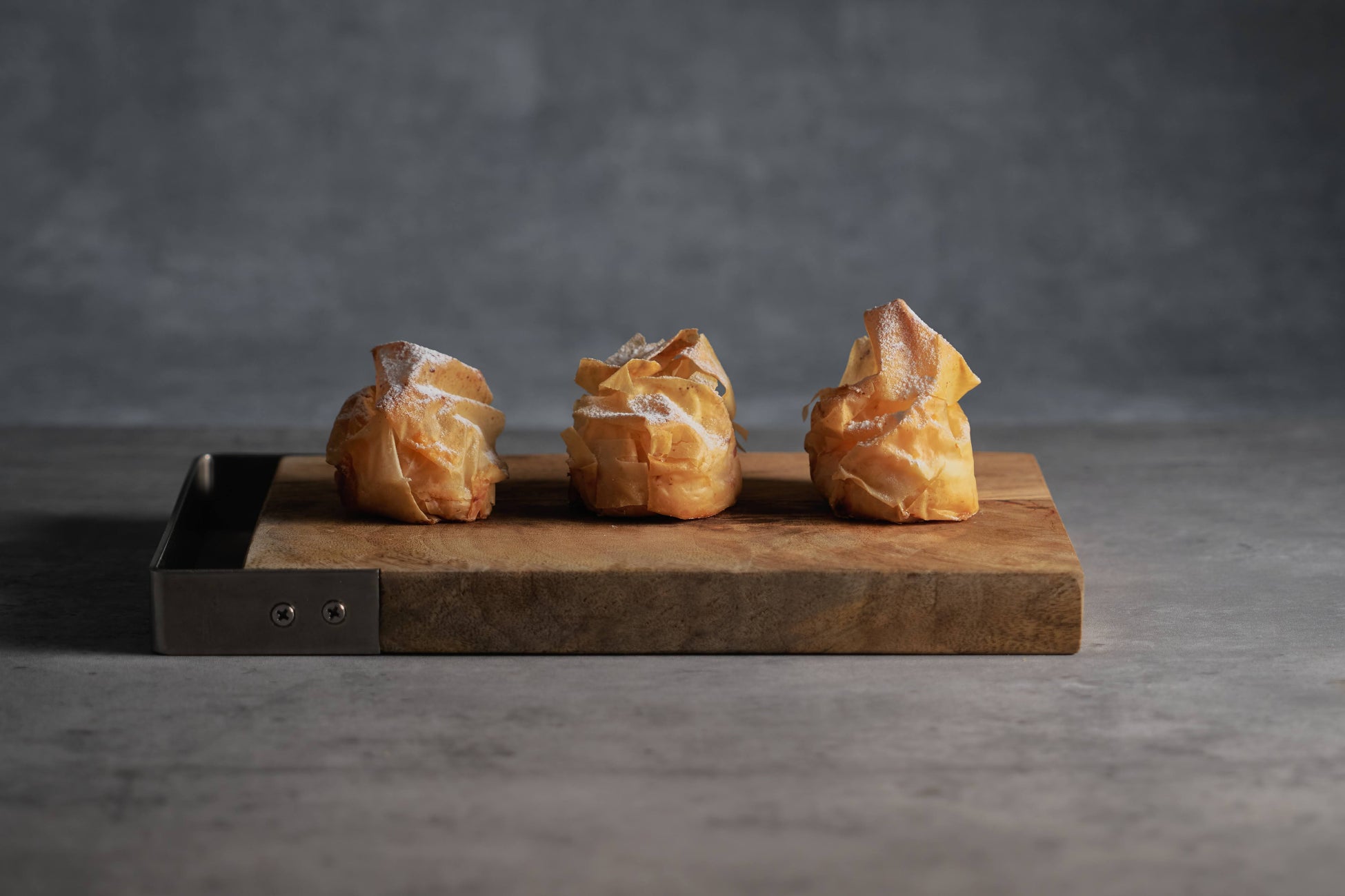 パートフィロという地中海発祥のとうもろこしや小麦の粉を使った薄いパイ生地を包んで焼き上げたパイ。