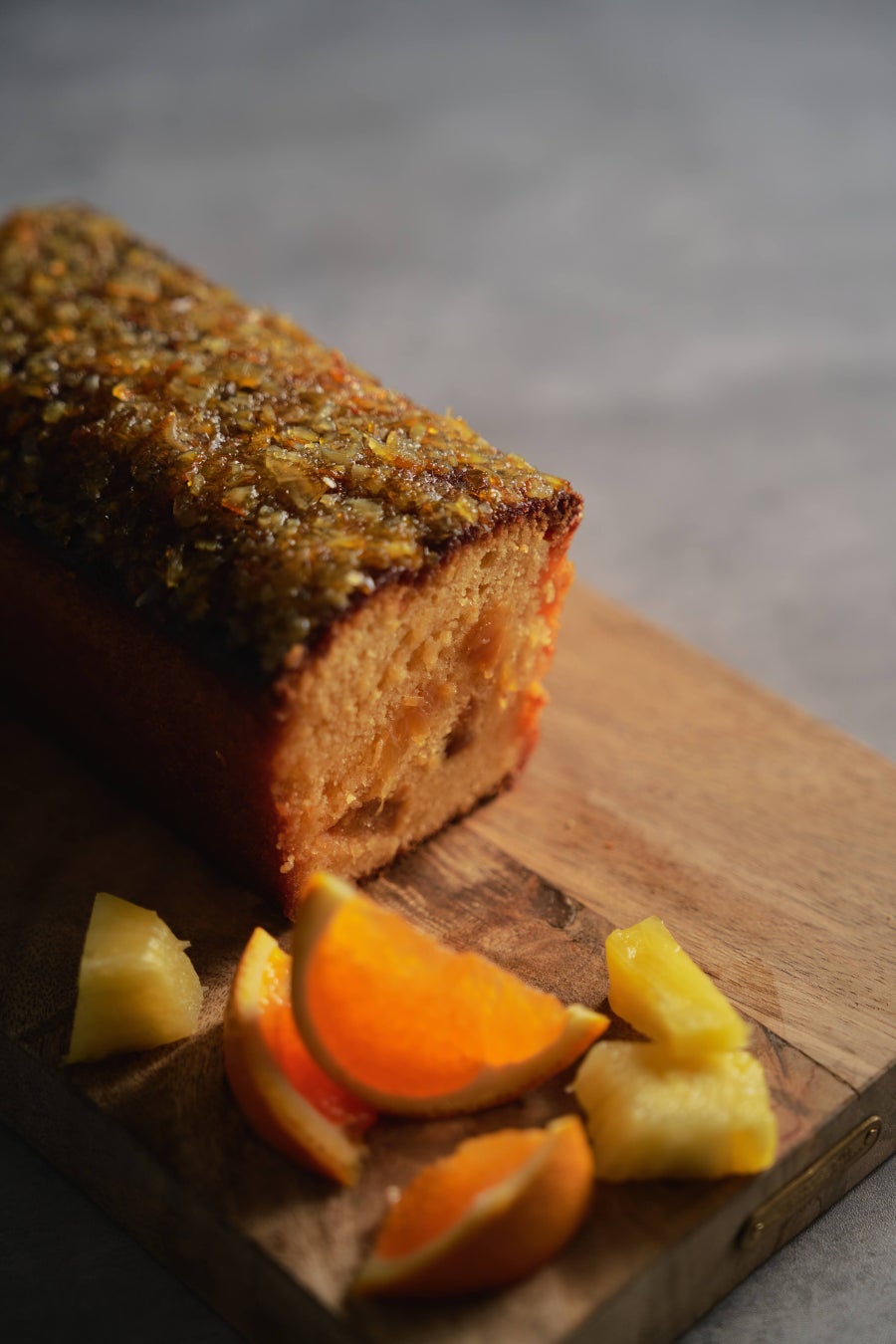 カラメルでソテーしたパイナップルとオレンジのスライスを