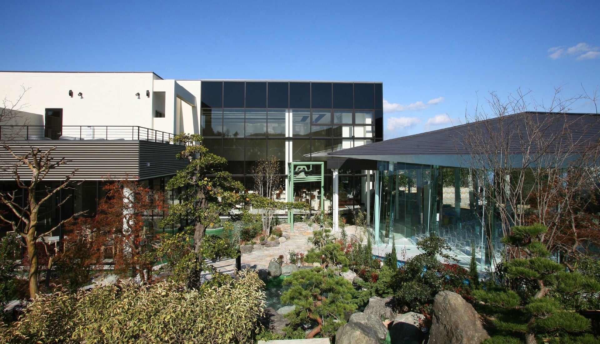 スタイリッシュな中にも和の要素を散りばめたモダンジャパニーズスタイルの「オランジェ五十鈴川テラス」。自然豊かな伊勢に溶け込むようにガーデンには日本古来の木々を配置し、五十鈴川のせせらぎをイメージした水の流れる風景を演出。バンケットには最新の音響・映像機器を設置し、様々なニーズやイベントに対応が可能です。