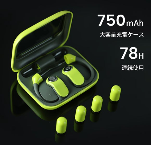 ❷大容量750mAh充電ケース併用で合計約78時間使用可能