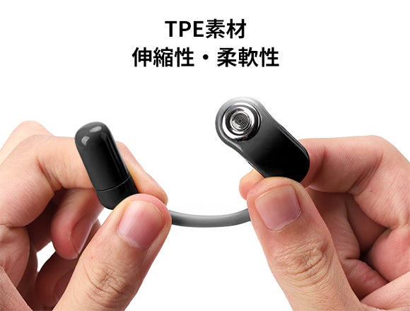 イヤーフック部分にTPE素材を採用しているため、柔軟な伸縮が可能で、長時間イヤホンを使用するライフスタイルでも快適に使用可能です。