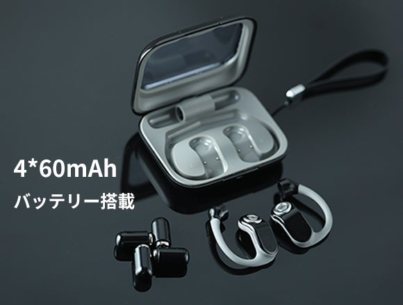 交換可能な磁気吸着式バッテリーが4個搭載されています。イヤホンのみで待受時間は約12時間、750mAh大容量充電用ケース併用でスタンバイ時間が最大120時間!