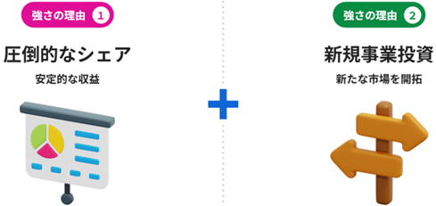 FANG+に含まれる銘柄がここまで強く米国を牽引してきたのは、圧倒的なシェアを構築し、そこで生まれた安定的な収益を新規事業に充て、新たな市場を開拓することを繰り返してきたからです。このサイクルにより今後も長期的な成長が期待されます。