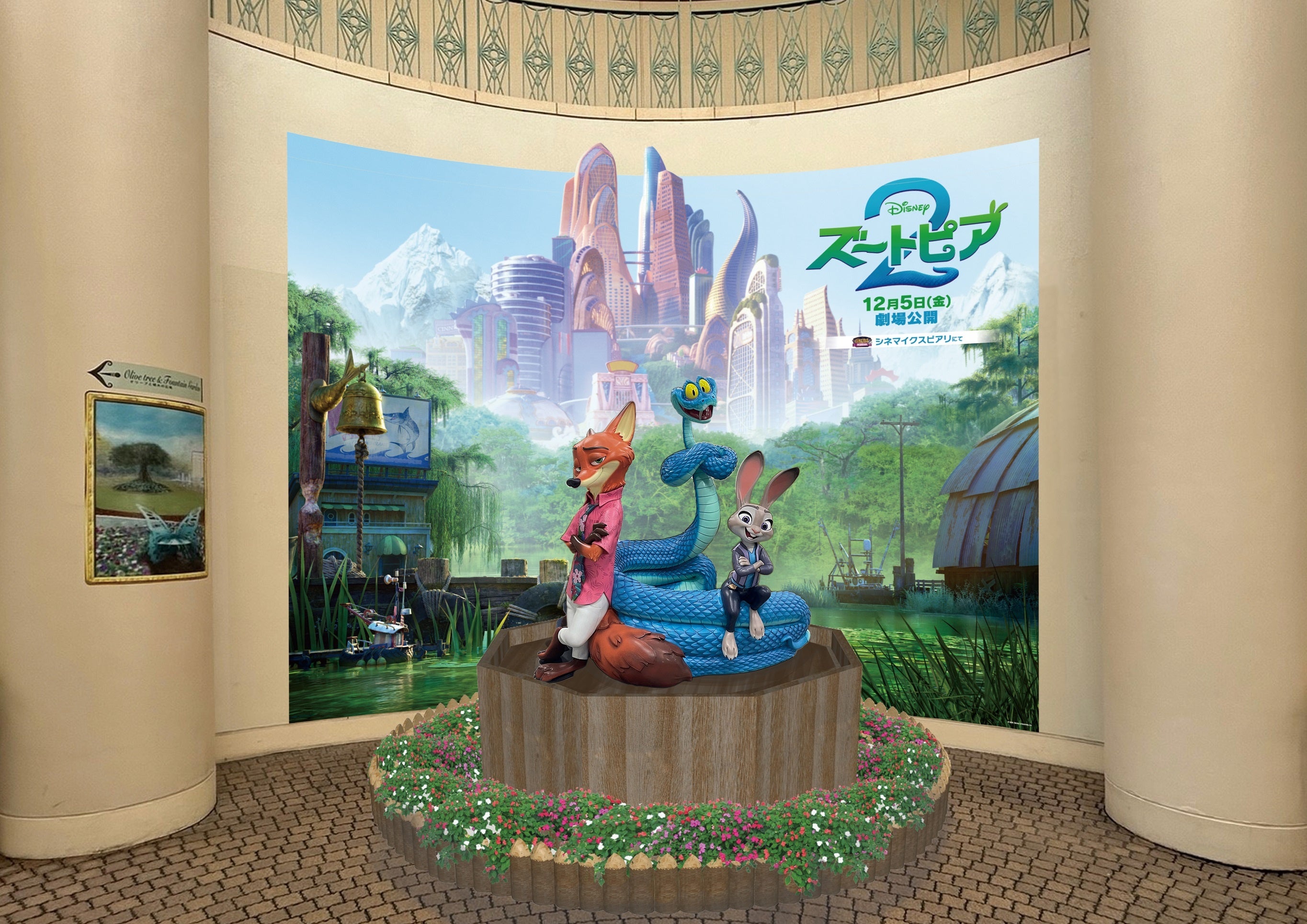 舞浜駅前の商業施設イクスピアリ(R)にある映画館シネマイクスピアリでは、ディズニー映画『ズートピア2』公開(12月5日(金)公開)に先駆けて、11月11日(火)から入口サインにある「IKSPIARI」の文字が、「ZOOTOPIARI」に変わります。前作に引き続き、本作『ズートピア2』でも、私たちの世界にあるさまざまな物が“ズートピア化”されて登場することを受けて、イクスピアリも“ズートピア化”!館内の各所で、ズートピアの世界観を楽しむことができます。 シネマイクスピアリのサインのまわりには、再びバディを組んだジュディとニック、そして新キャラクターのヘビのゲイリーも装飾され、皆さまを映画の世界へ誘います。