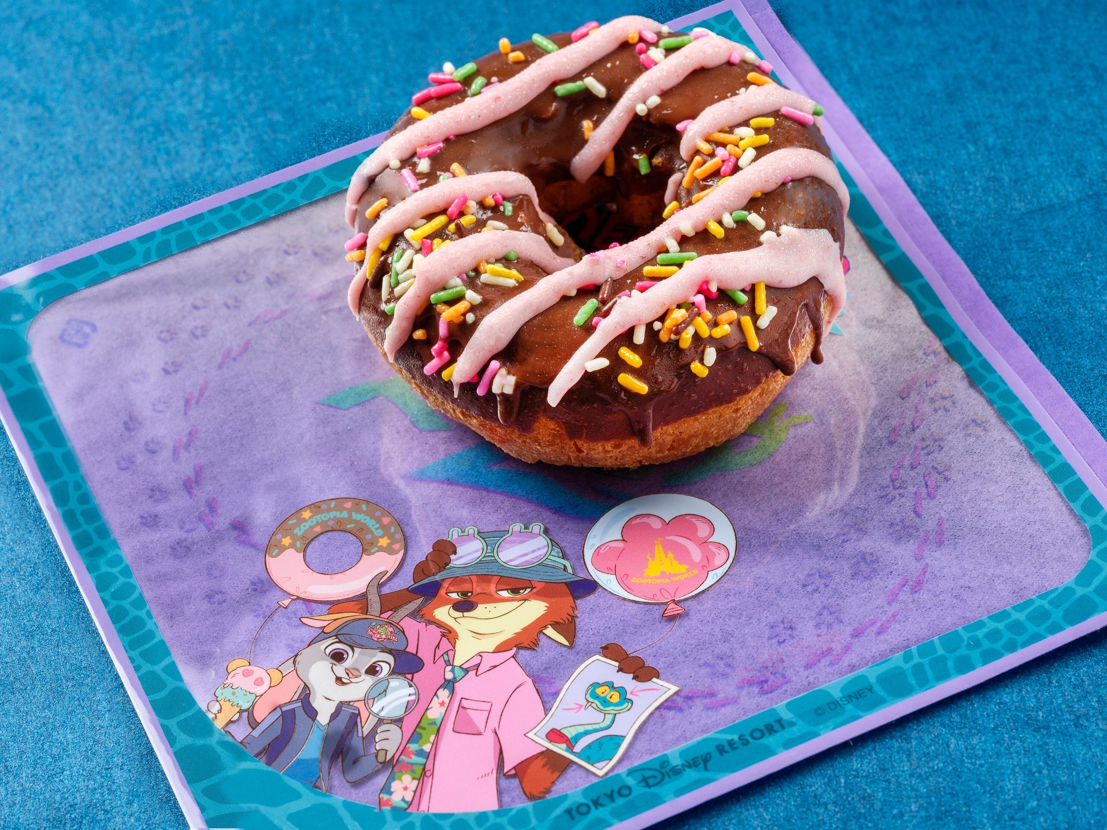 東京ディズニーランドの「スウィートハート・カフェ」、東京ディズニーシー(R)の「マンマ・ビスコッティーズ・ベーカリー」などの店舗で、ディズニー映画『ズートピア』に登場するドーナツをイメージした、カラフルで目を引くチョコドーナツが登場します。また、2つのパークのポップコーンワゴンでは、テーマパークで潜入捜査を楽しむジュディとニックの様子が描かれた、ポップコーン、レギュラーボックスが特別デザインで登場します。