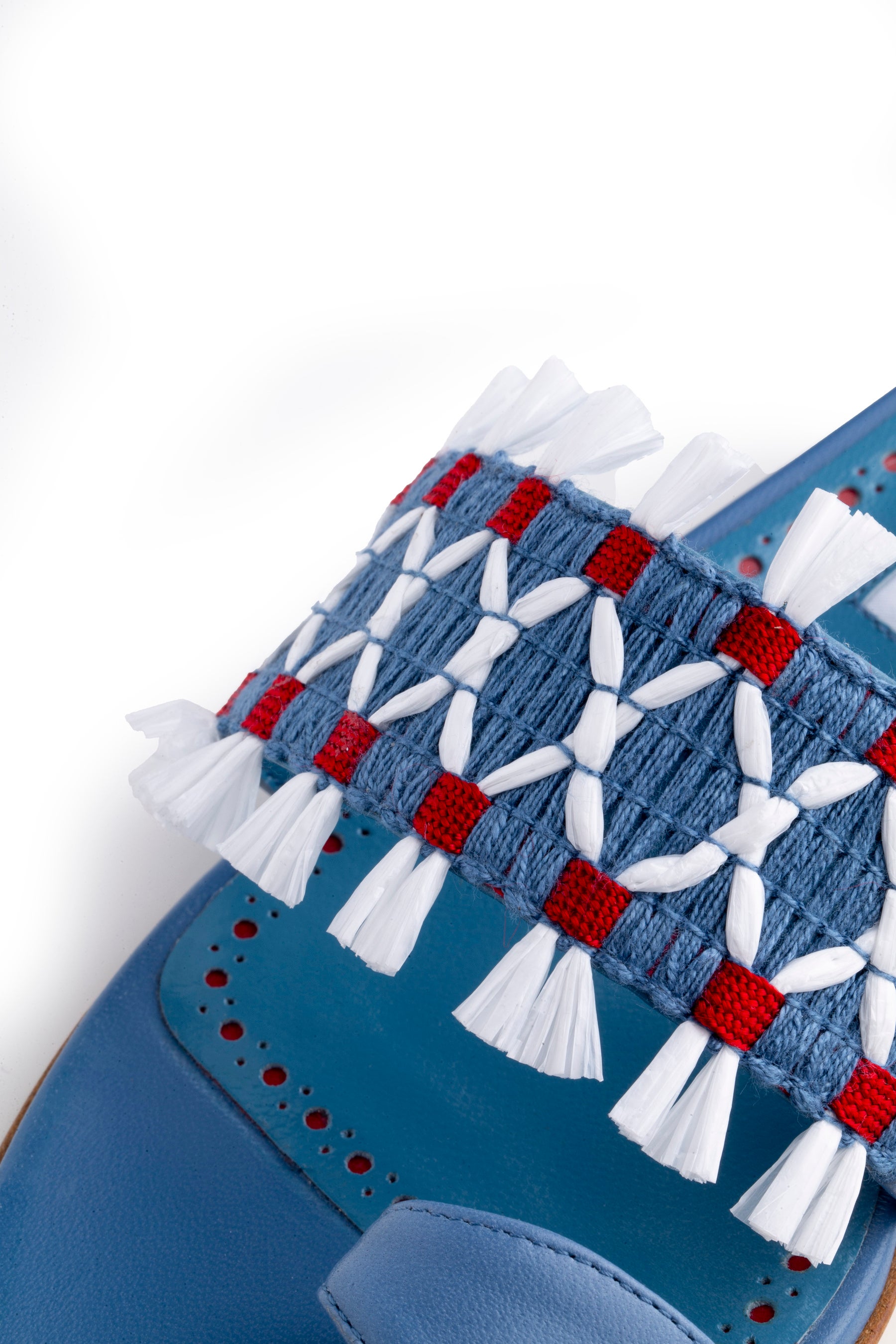 コート・ダジュールの果てしない夏を思わせる、フランス語で“生きる喜び”を意味するジョワ・ド・ヴィーヴルのムードは、レースアップスタイルやウーブンデザインに投影され、赤・青の鮮やかな配色で軽やかに表現されています。