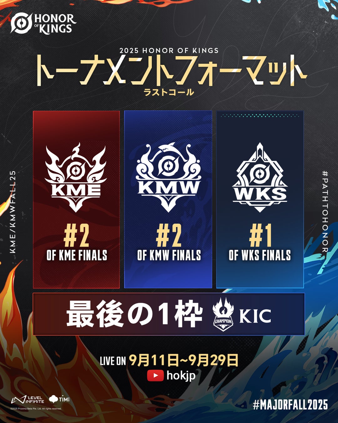 – KMWおよびKMEの2位チームがWKS(Wildcard Kings Series)王者と対戦し、KIC最後の出場枠を争います。