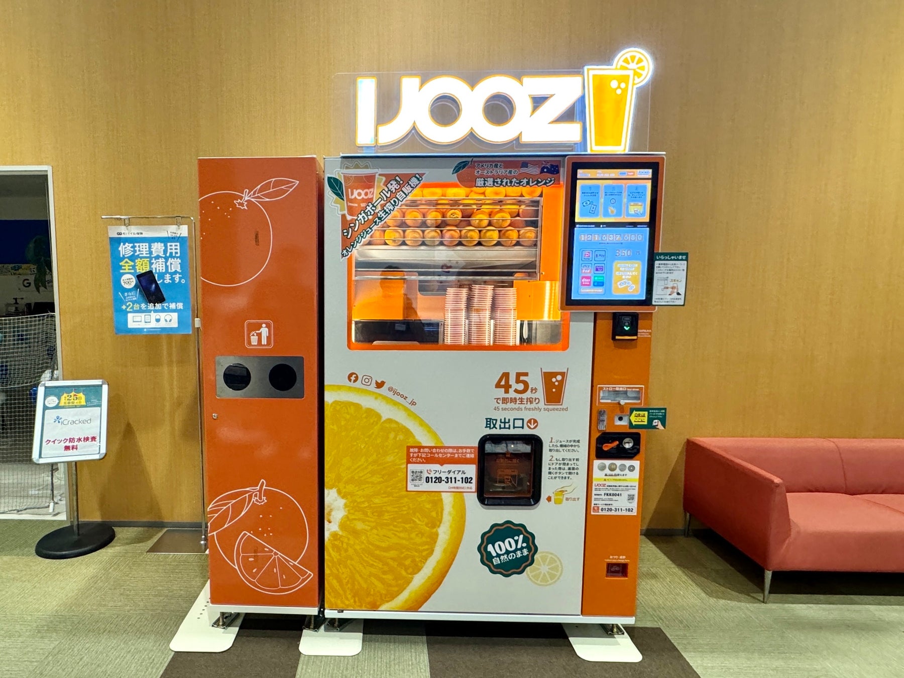 生搾りオレンジジュースの自動販売機を展開するIJOOZ(アイジュース)株式会社は、「させぼ五番街」3F トイザらス前通路で、生搾りオレンジジュース自動販売機の稼働を開始しました。