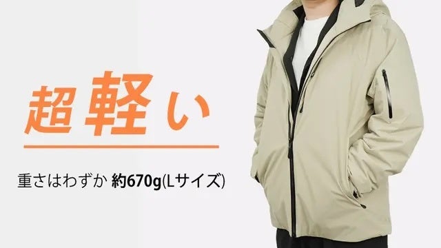 ①重さはわずか670g!薄くて軽いのに、暖かさはダウンジャケットに匹敵!厚着知らずで快適な着心地