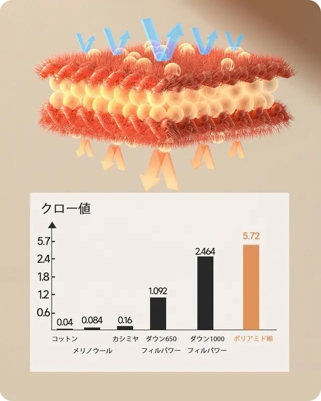 ポリアミドコットンは非常に優れた保温性能を持っていることがわかります。