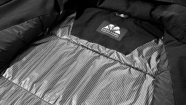 このジャケットに使われている「ポリアミド」は、優れた保温性、耐摩耗性、軽量性を兼ね備えています。その特性から航空産業などでも活用されており、航空機エンジン部品、宇宙服や、厳しい環境下ではロケットの液体水素燃料の断熱材としても使用されている素材です。