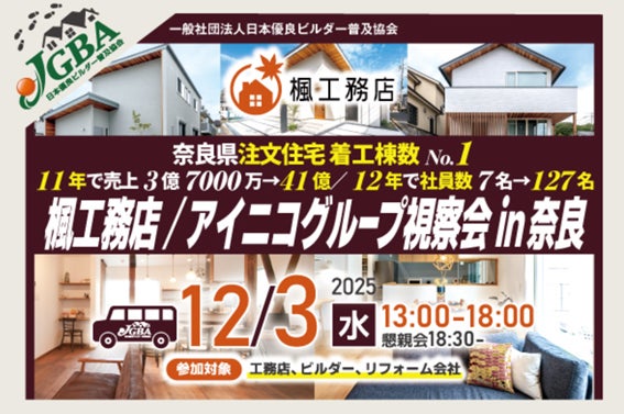 全国の工務店・ビルダー向け「楓工務店/アイニコグループ視察会 in 奈良」開催のご案内です。