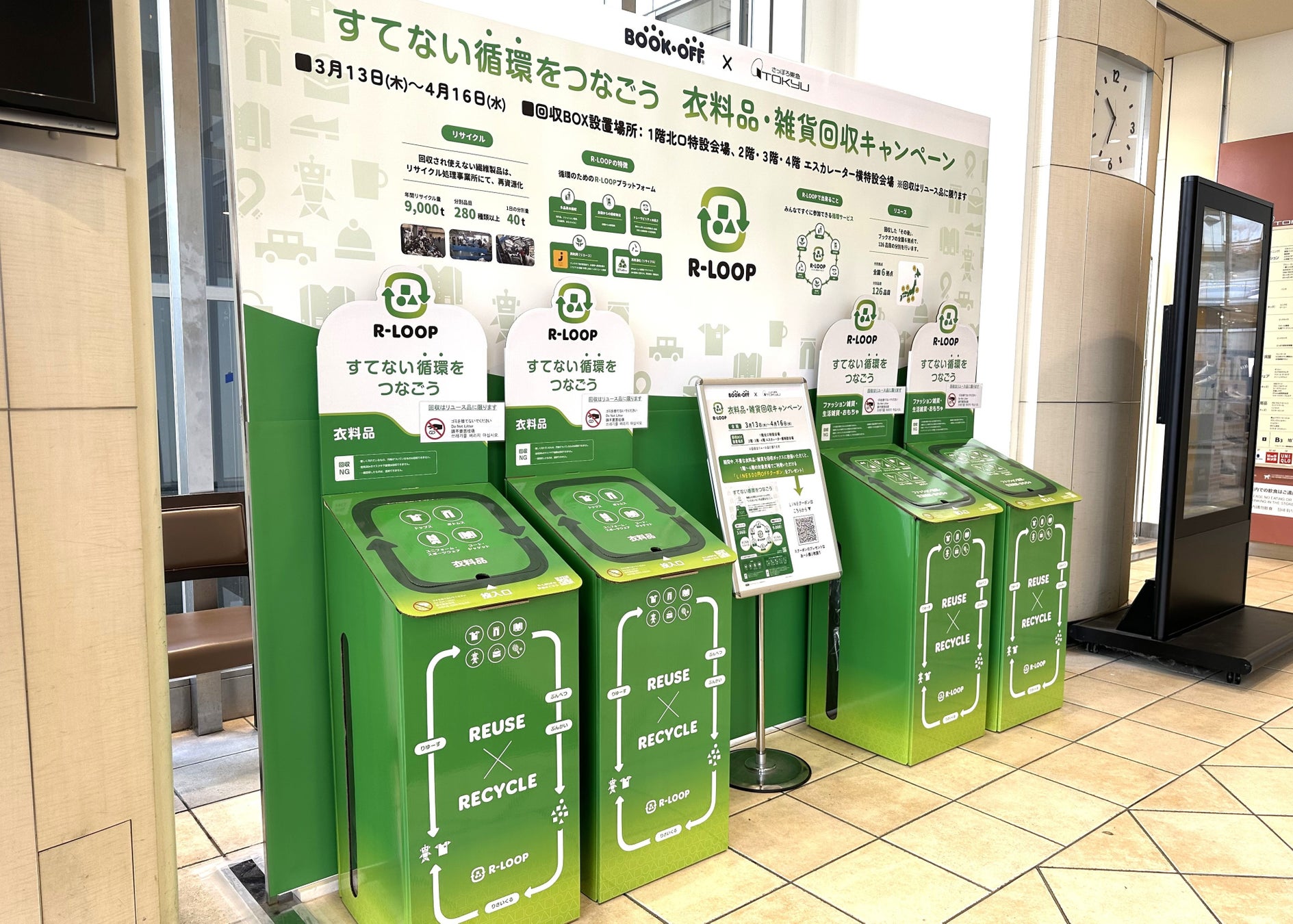 ブックオフグループホールディングス株式会社(本社:神奈川県相模原市、代表取締役社長:堀内康隆)の子会社で、リユースショップ「BOOKOFF」等を運営するブックオフコーポレーション株式会社(以下、ブックオフ)は、リユースやリサイクルを気軽に取り組んでいただくことを目的に、ボックス型不要品回収システム「R-LOOP(アールループ)」を2024年11月より展開し、2025年4月末時点で回収量15トン、設置拠点数200か所を突破いたしました。今後は衣替え時など洋服の手放し方を考える際の選択肢として、生活者により身近な場所であるブックオフグループ店舗などへの設置を進め、“すてないライフスタイル”の提供と、リユース・リサイクルによる循環型社会の実現に取り組んでまいります。