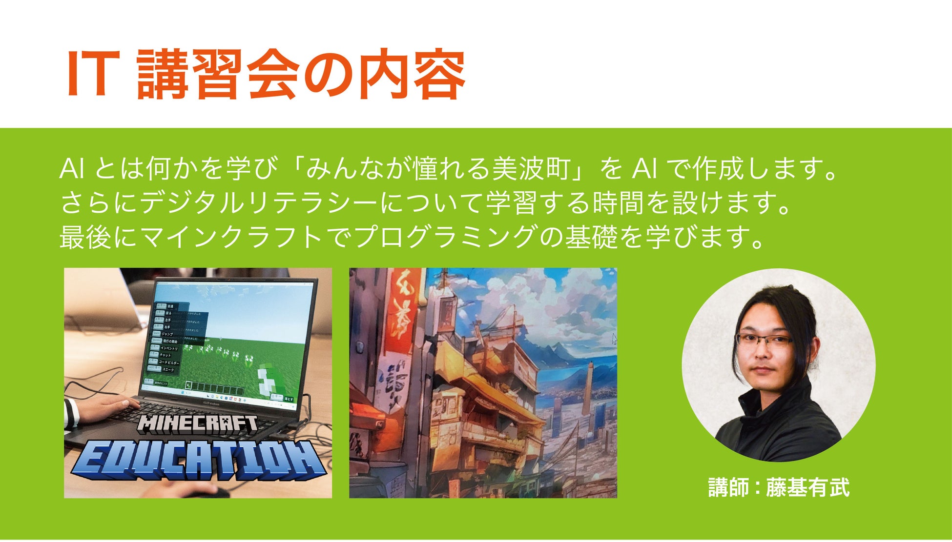 AIとは何かを学び、「みんなが憧れる美波町」をAIで作成します。