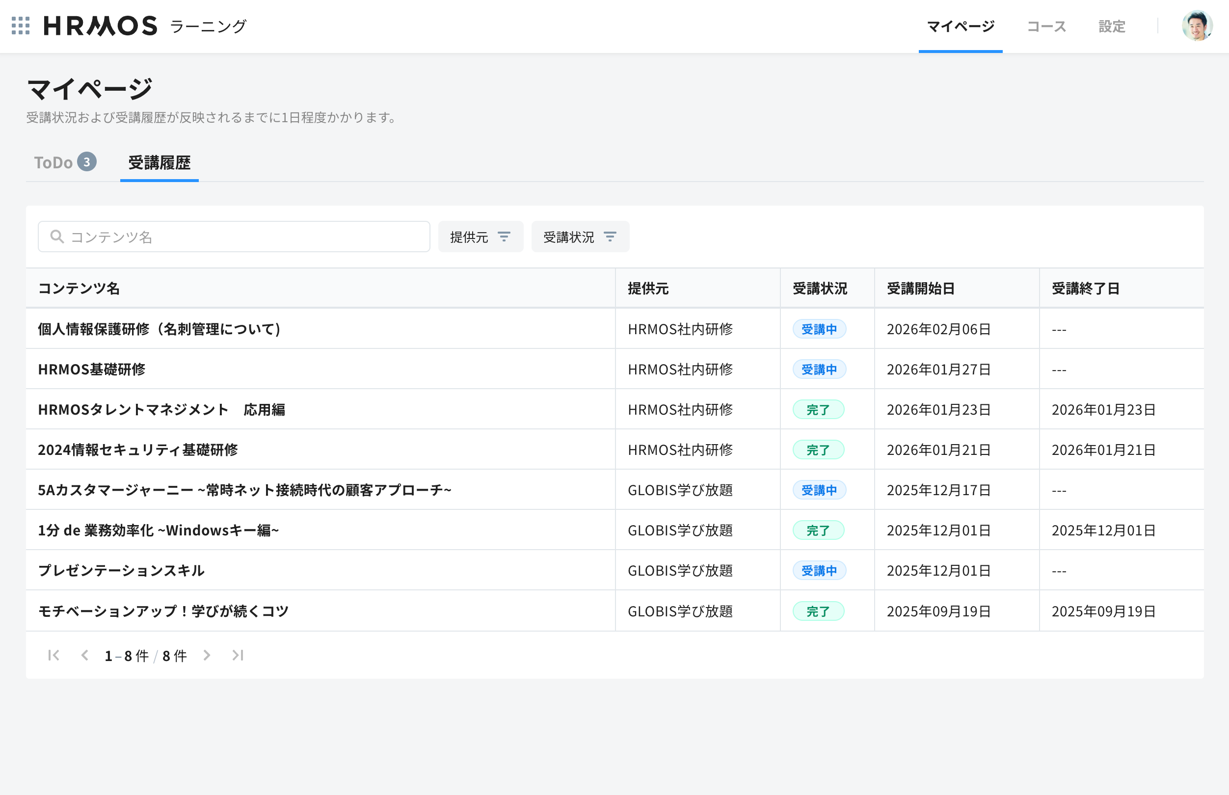 また、社内研修だけでなく外部研修などの学習コンテンツも含め、社内外すべての受講履歴を管理できます。さらに、受講履歴データは、HRMOSシリーズの人材活用システム「HRMOSタレントマネジメント」に自動的に連携されます。