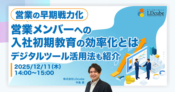 「【営業の早期戦力化】営業メンバーへの入社初期教育の効率化とは ~デジタルツール活用法も紹介~」ウェビナーを開催(12月11日14:00~15:00)|株式会社LDcube