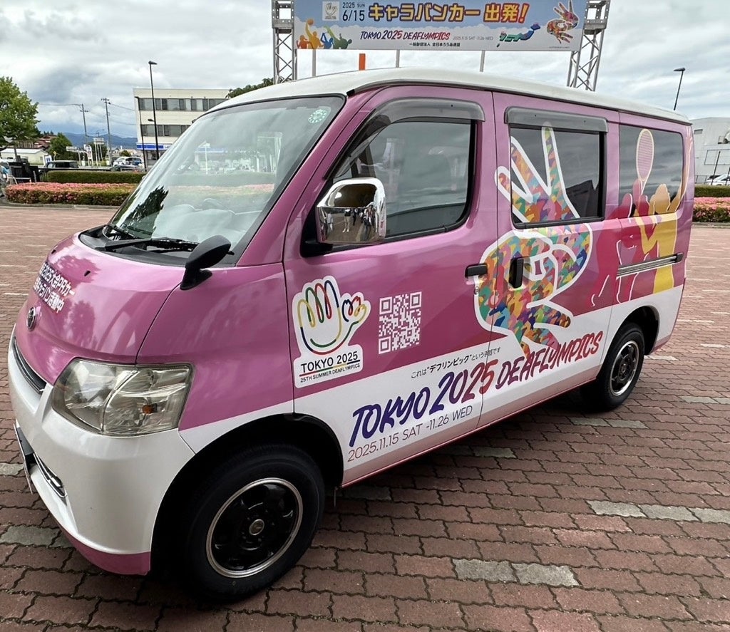 また、大会開催地である東京都を目指し、北と南から2台のラッピングカーが全国を巡回しております。イベント当日には本市にも立ち寄り、デフリンピックに関する展示等が行われます。