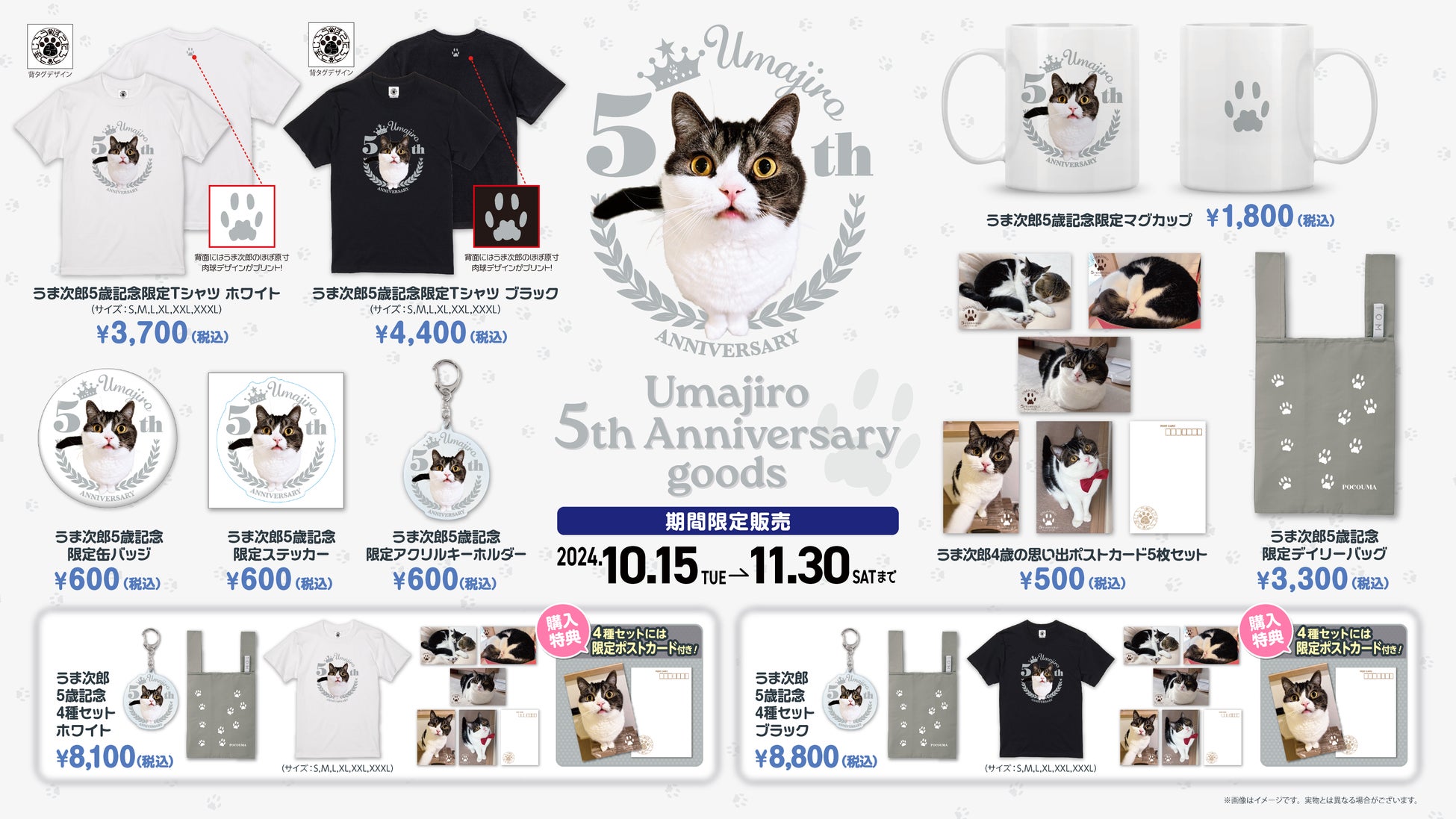YouTubeで人気の『スコスコぽこ太郎&うま次郎〜猫ちゃんねる〜』のうま次郎が5歳の誕生日を迎え「うま次郎5歳記念限定グッズ」を10月15日18時より販売開始いたしました!