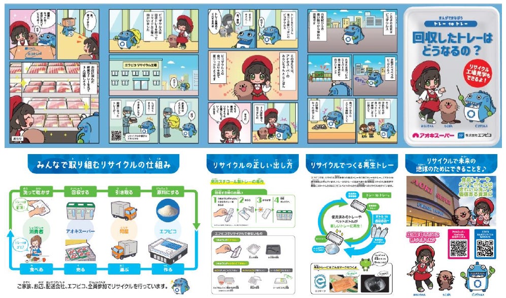 食品容器製造メーカーのエフピコによる『トレーtoトレー』の水平リサイクル(店頭で回収した食品トレーを新たな食品トレーに生まれ変わらせる資源循環の仕組み)について、当社オリジナルのリーフレットを使いながら、まんがで楽しく学べる授業を実施