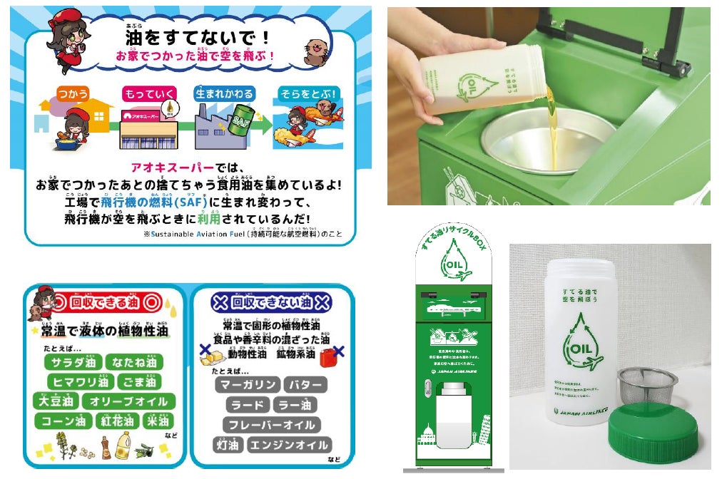 これまで当社では、店舗への省エネルギー設備導入や食品ロス削減、食品トレー・ペットボトルの回収・再資源化など、様々な環境貢献活動を実施してまいりました。さらに今回、ご家庭で使用済みの食用油を店頭で回収し、『SAF(Sustainable Aviation Fuel/持続可能な航空燃料)』にリサイクルする取り組みを新たに加え、環境負荷の一層の低減に取り組むと同時に、小学校への出前授業など環境意識を高める啓発活動にも積極的に取り組み、地域の皆さまとともにゼロカーボンの実現を目指してまいります。