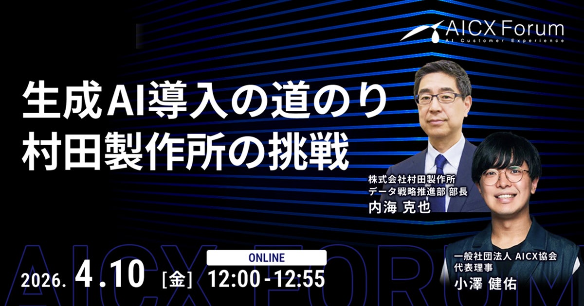 一般社団法人AICX協会(東京都、代表理事:小栗 伸/小澤 健祐、以下、AICX協会)は、2026年4月10日(金)12:00〜12:55、AICX Forum「生成AI導入の道のり 村田製作所の挑戦」を開催します。