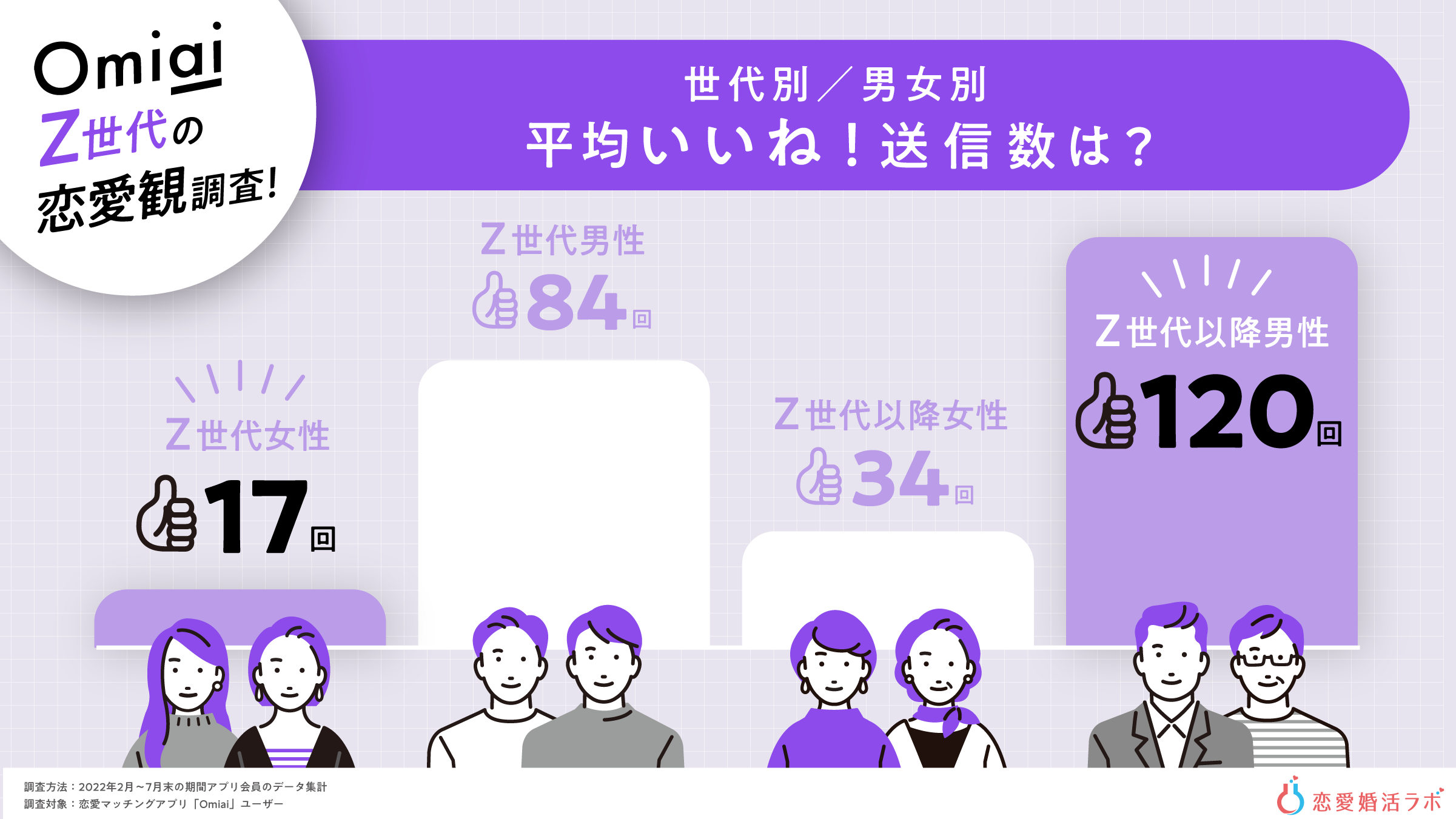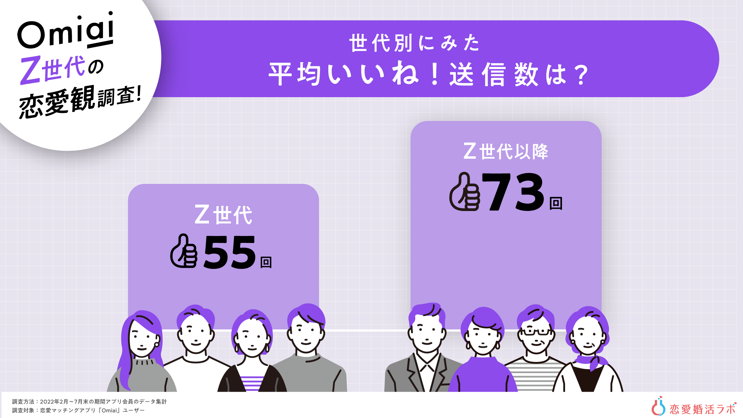 - Z世代は草食系?マッチングアプリで異性に「いいね!」のアクションをする回数はその他の世代と比較して約3割減!
