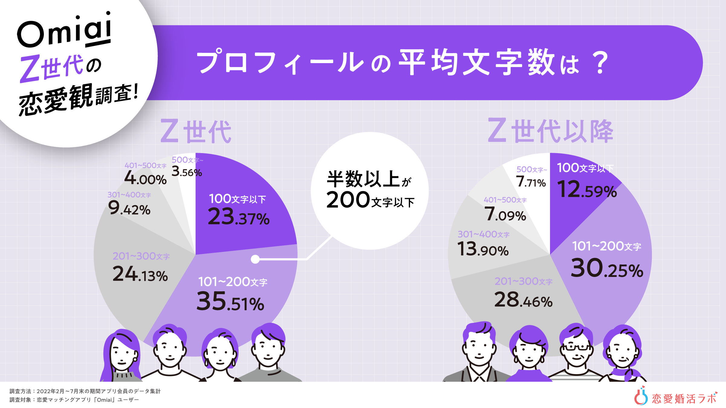 - Z世代は短文派!マッチングアプリのプロフィール文字数「200文字以下」が半数以上!SNS慣れしているので短文で自己紹介が上手に可能!