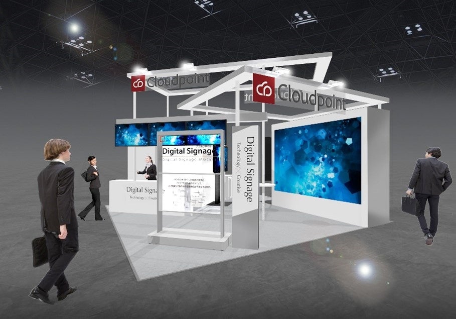 クラウドポイントブースでは、商業施設でのブランティングやエンターテイメントを目的とする「映像演出」や新商品やキャンペーン情報などを伝える「販売促進」、フロア案内やイベント周知などに欠かせない「情報提供」をパワーアップさせるデジタルサイネージソリューションを展示します。