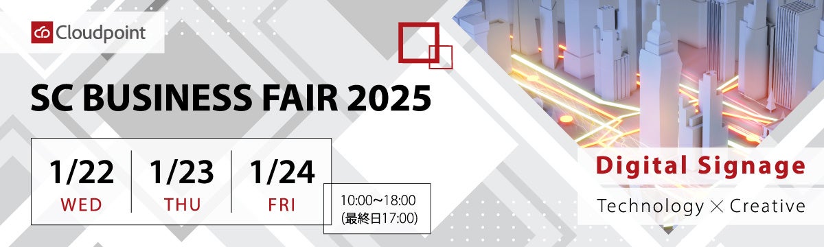 ペイクラウドホールディングス株式会社(東証グロース:4015)の傘下でデジタルサイネージ関連事業を展開する株式会社クラウドポイント(本社:東京都渋谷区、代表取締役:三浦 嚴嗣)は、1月22日(水)から1月24日(金)にかけてパシフィコ横浜で開催されるショッピングセンター関係者が一堂に会する商談展示会「SCビジネスフェア2025」にブース出展いたします。