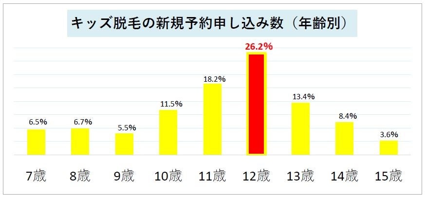エステティックTBCがプロデュースする脱毛サロン「エピレ」より「キッズ脱毛」の最新情報をお届けいたします。エピレで脱毛するお客様の中でのキッズ(7歳から15歳)の割合は年々増加しております。その中で、キッズたちが脱毛を始める年齢は「12歳」が最多※ということがわかりました。