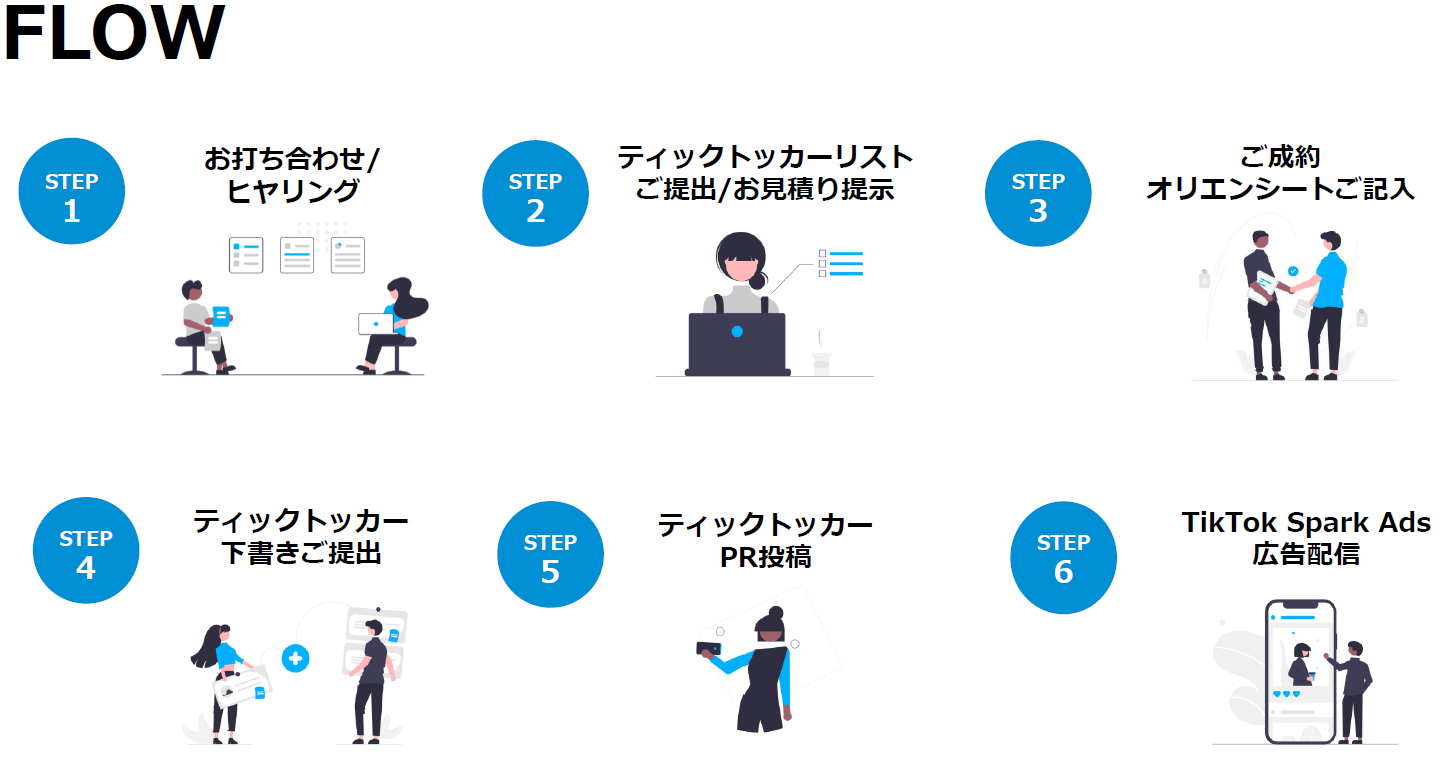 ティックトッカーキャスティング、動画制作、PR投稿、Tik Tok広告出稿まですべてワンストップで提供