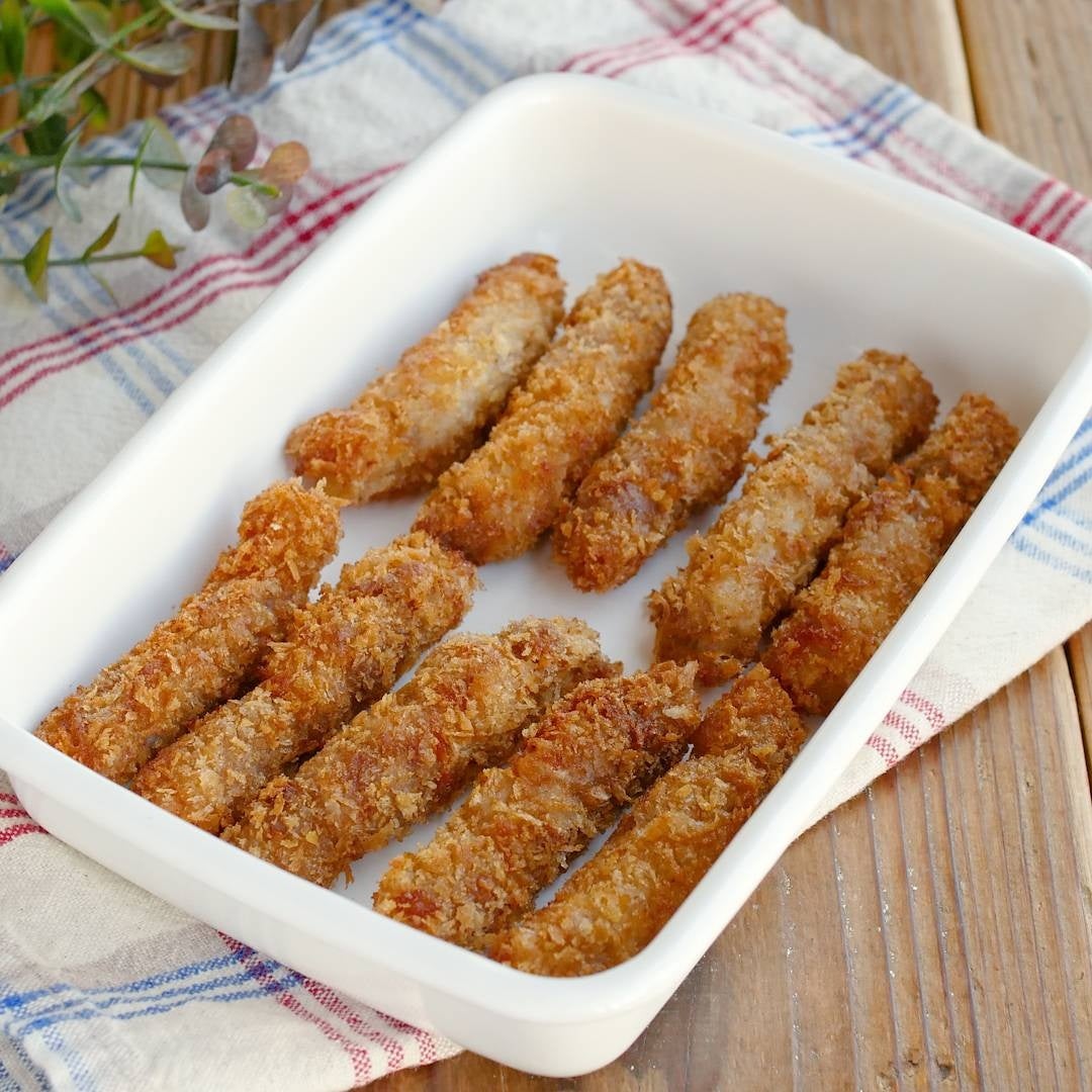 コスパのよさに加え、串にすることで食べ応えと楽しさを両立しています。バッター液を細長いグラスに入れる工夫も、日々の調理にすぐ役立つアイデアとして注目されました。
