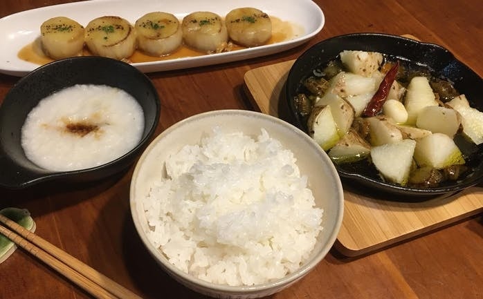 12月に旬を迎える長いもは、なんと30㎝以上の特大サイズでお手元に届きます。旬を迎えた甘みたっぷりの根菜とホタテベビーを使って、「財田米」にぴったりなおかずを一緒に作りましょう。