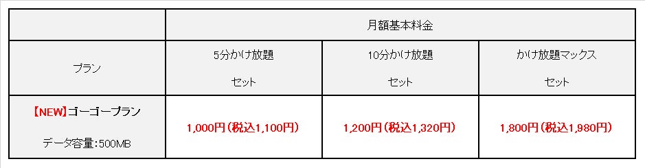 「なっとくプラン」の3GBプラン、8GBプランを提供開始いたします。また、音声通話が中心の方向けには、月間データ通信容量500MBとかけ放題オプションがセットとなった「ゴーゴープラン」を新たに提供いたします。