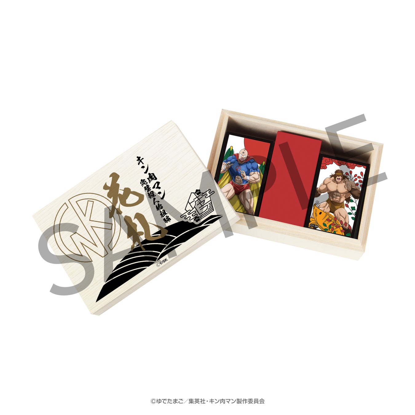 本製品は、京都で寛政12年(1800年)創業の老舗・大石天狗堂による高級裏貼り仕上げで、一枚一枚の札に見られる絶妙な「反り」は、丁寧に刷毛を使ってのり付けすることで起こる、江戸時代から受け継がれた伝統的な工法による証です。超人たちと美しい花札の図柄との融合をお楽しみください。また、花札を入れるオリジナル木箱は名刺入れや小物入れなど、アイデア次第でさまざまな用途にお使いいただけます。