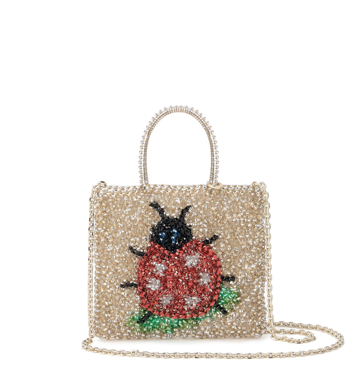 『ハイジ』のアヒルとテントウ虫をデザインしたワイヤーバッグ2種。テントウ虫をデザインしたミニショルダーバッグはシャンパンゴールドとシルバーが表裏になった柔らかな発色のシルバーゴールドと新色シルバーの2色を展開。取り外しのできる付属のチェーンはアレンジができ、ショルダー、斜めがけの3WAYでお使いいただけます。STANDARD(スタンダード)/スクエア ラージと同サイズのトートバッグは、シルバーと、ネイビーシートの端にシルバーシートをそわせた、繊細な煌めきのニュアンスカラーの新色ネイビーシルバーの2色を展開。アヒルと立体的に編んだフラワーモチーフもプラスし、『ハイジ』の世界観を表現しました。職人技が光るスペシャルなコレクションは「遊び心」を探求するアンテプリマならではのアイテムに仕上がりました。