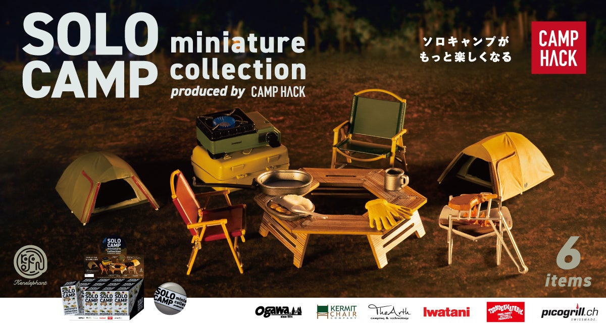 「今までにないワクワクを。」をスローガンに掲げる日本最大級のアウトドアWEBメディア「CAMP HACK」(運営:株式会社スペースキー)は、フィギュアメーカー株式会社ケンエレファントより発売される、カプセルトイ「ソロキャンプ ミニチュアコレクション produced by CAMP HACK」をプロデュースしました。