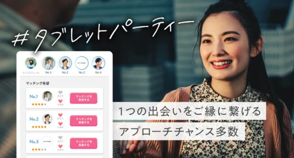 タブレットを使用する最新式のパーティーでは、ダブルマッチング形式を採用しており、1つの出会いで複数回アプローチチャンスがあります。