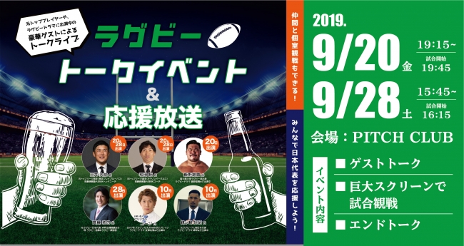 ラグビー日本代表戦をみんなで応援!元日本代表選手や、話題のラグビードラマ出演者によるトーク&応援イベントを横浜のPITCH CLUBで開催!