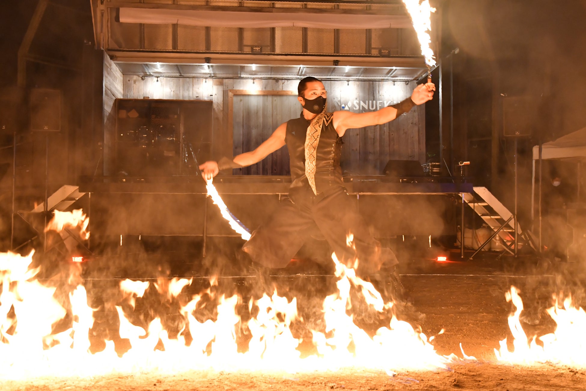 千葉公園のさまざまな場所でサーカスの世界を感じるパフォーマンスが展開されます。火を使った迫力満点の演出や、ユーモラスなピエロが公園を彩り、観客を魅了します。一夜限りの幻想的なサーカス体験を、どうぞお楽しみに。
